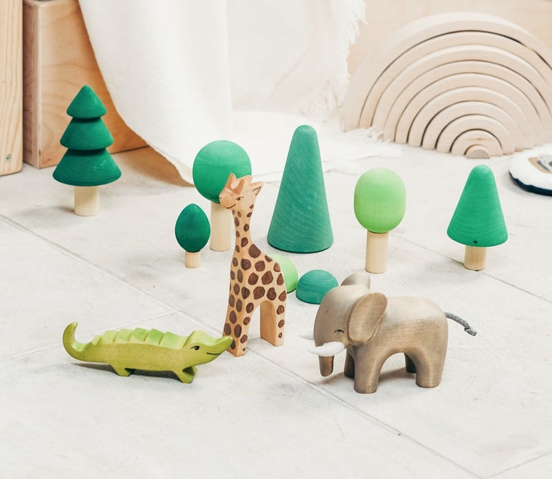 Allow your child to imagine magical worlds with wooden toy sets that come with animals & blocks.