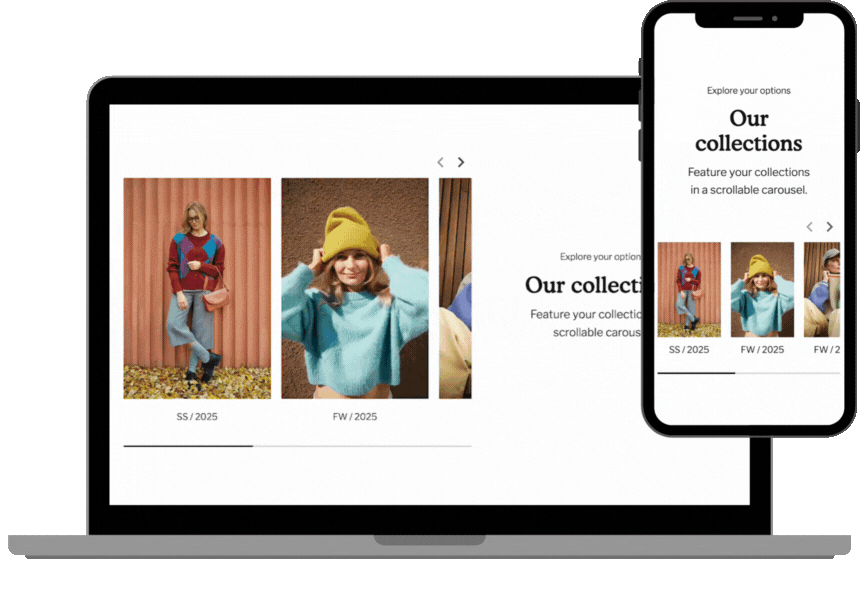 This section showcases multiple collections in an attractive scrolling gallery format, letting customers browse through your store's collection offerings with ease.