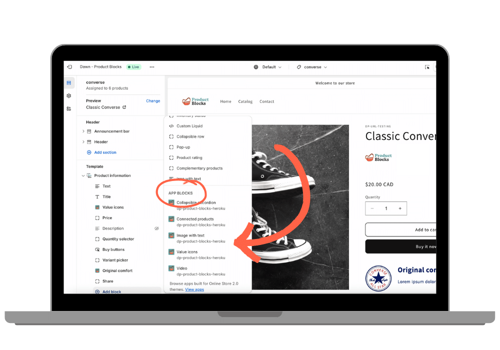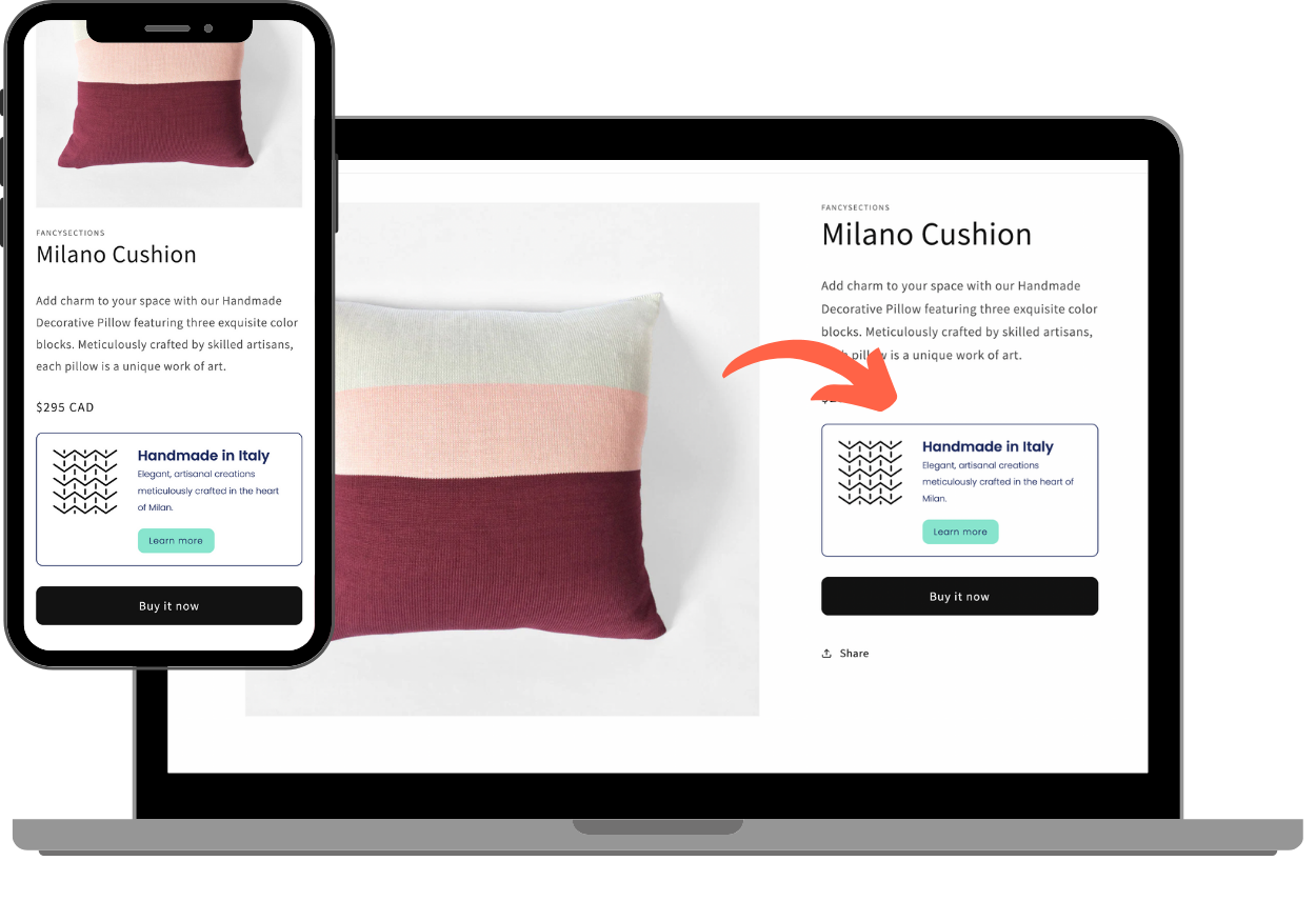 Photos and videos are powerful tools for product pages. Instructional or promotional videos can easily be lost in the product gallery, but this video block puts them front and center. Compatible with HTML5 (hosted video) or Youtube and Vimeo.