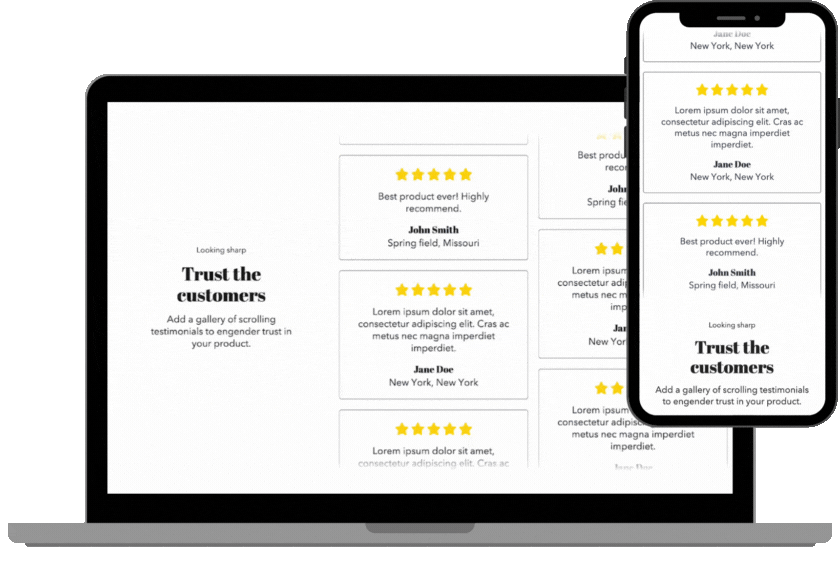 Add a gallery of scrolling testimonials to engender trust in your product.